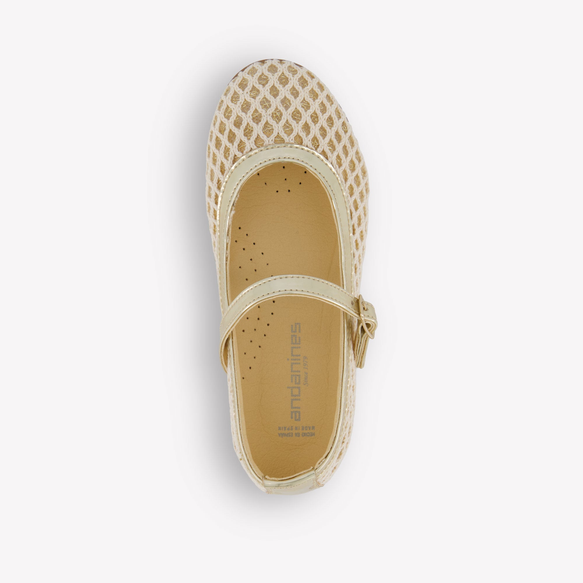 Verrijk haar garderobe met deze verfijnde meisjes schoenen van Andanines – een elegante keuze voor zomerse dagen of feestelijke momenten. De luchtige gaasstructuur in een zachte beige tint wordt prachtig omlijst door glanzende metallic accenten. Dankzij het verstelbare bandje sluit het schoentje perfect aan, terwijl het lichte ontwerp zorgt voor optimaal comfort bij elke stap. 🌸
