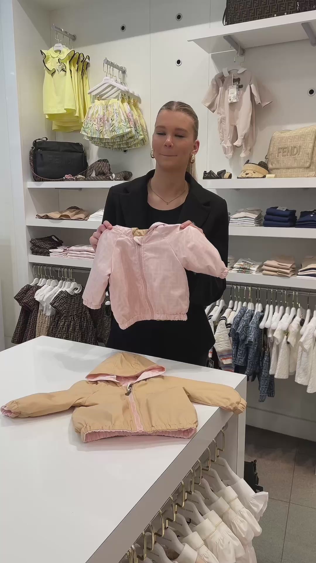 Ervaar pure elegantie met de Fendi baby tussenjas in zacht lichtroze. Deze verfijnde jas omhult je kleintje in een warme omhelzing, perfect voor de winter van 2025. De luxueuze stof straalt kwaliteit en vakmanschap uit, met subtiele Fendi-details die het ontwerp extra bijzonder maken.