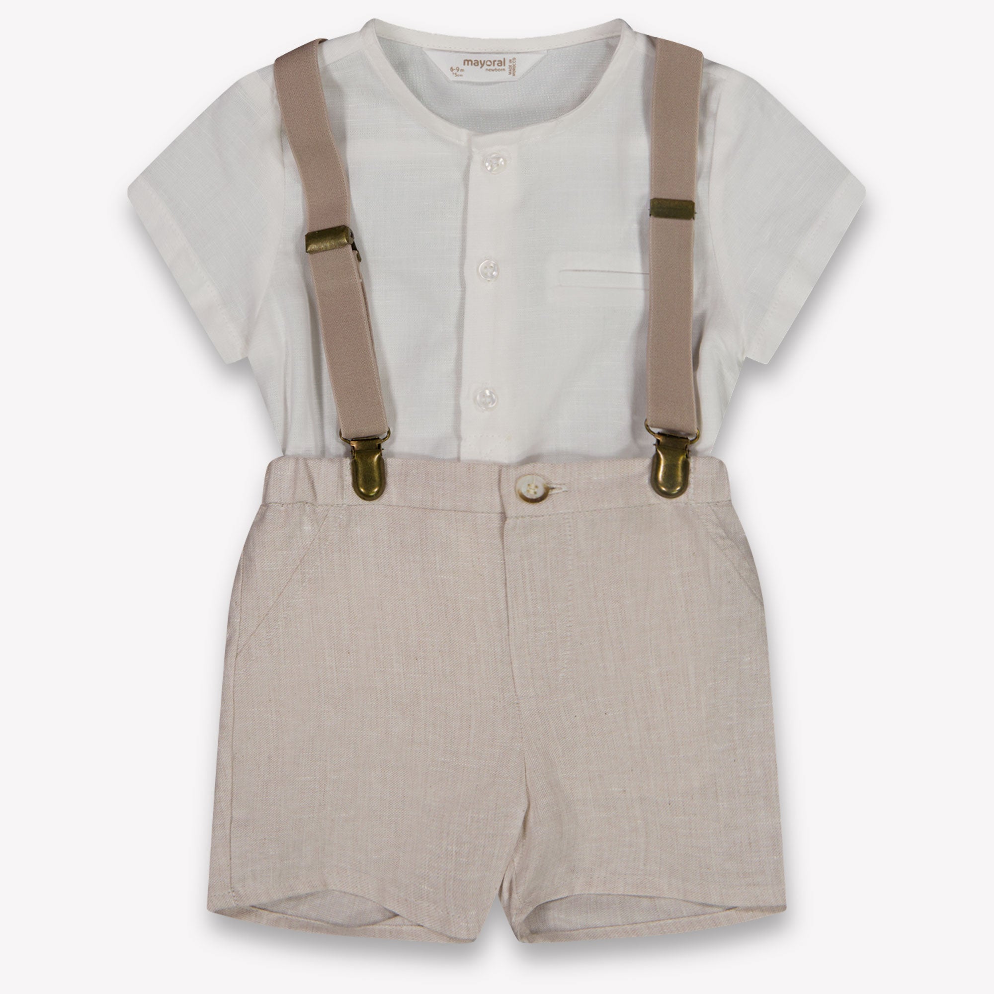 Verfijnd, tijdloos en onweerstaanbaar zacht — dit beige setje van Mayoral tilt de zomergarderobe van je kleintje naar een hoger niveau 🤍. De combinatie van een luchtig shirt en bijpassende short met bretels straalt pure elegantie uit, terwijl de comfortabele pasvorm zorgt voor moeiteloze bewegingsvrijheid. Perfect voor zonnige dagen, feestelijke momenten of stijlvolle uitstapjes.