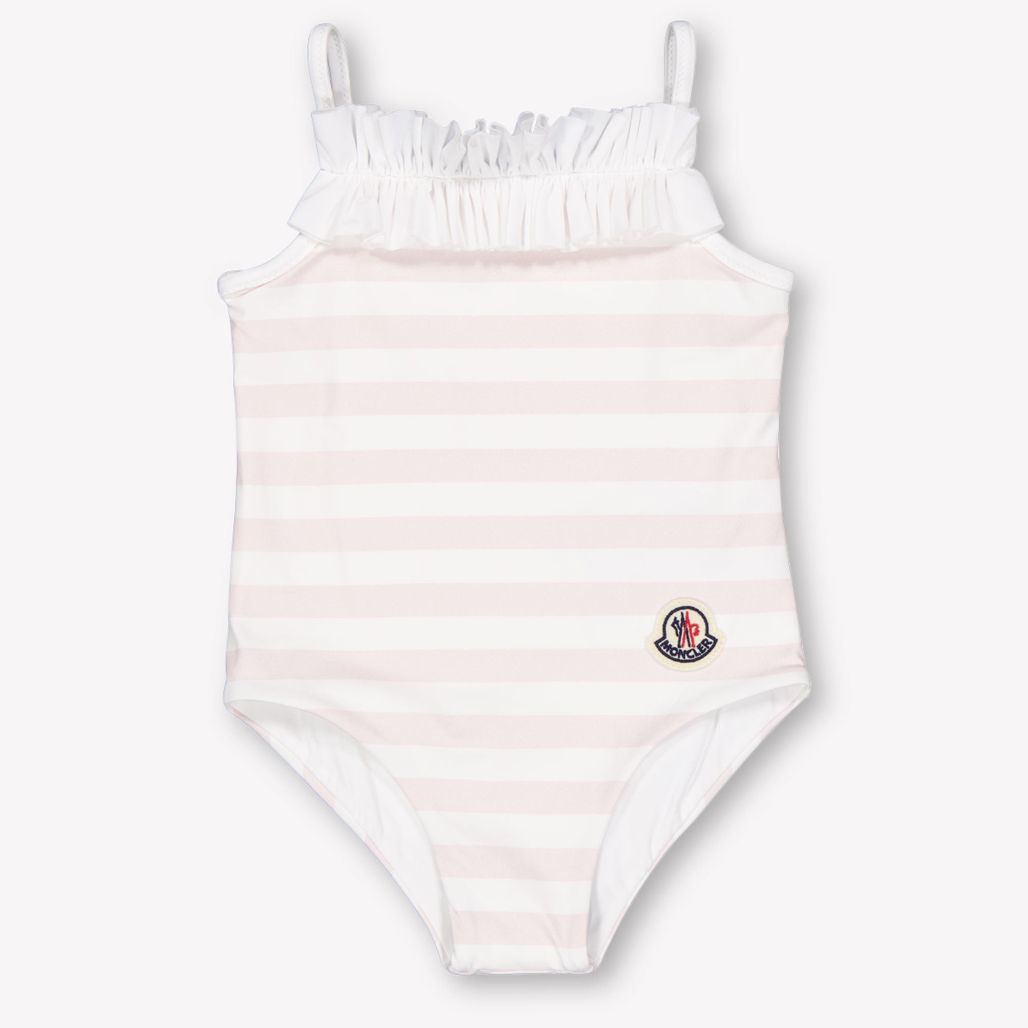 Ontdek de pure elegantie van de Moncler Baby meisjes zwemkleding in licht roze. Dit verfijnde badpak combineert zachtheid met stijl, perfect voor zonnige dagen aan het water. Het gestreepte patroon en de delicate ruches maken het een must-have voor stijlbewuste ouders. Laat je kleintje stralen in luxe en comfort. 🌸