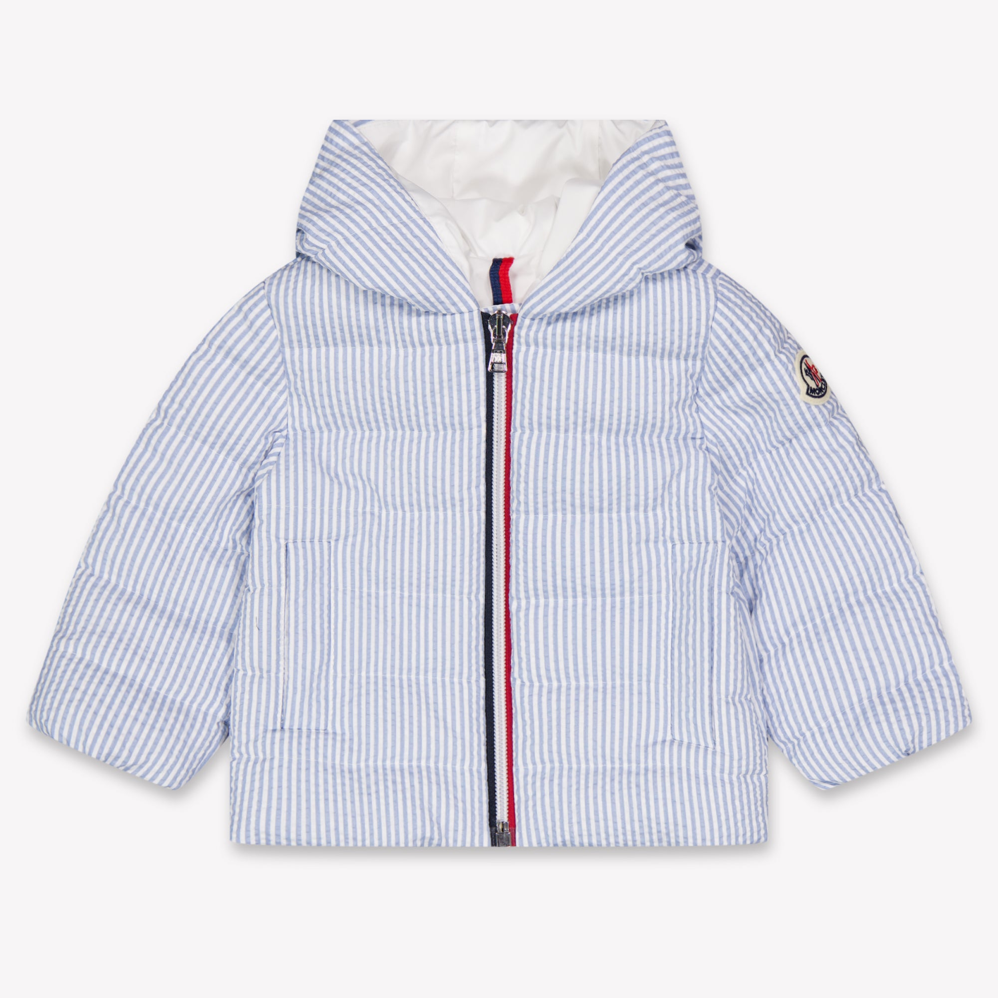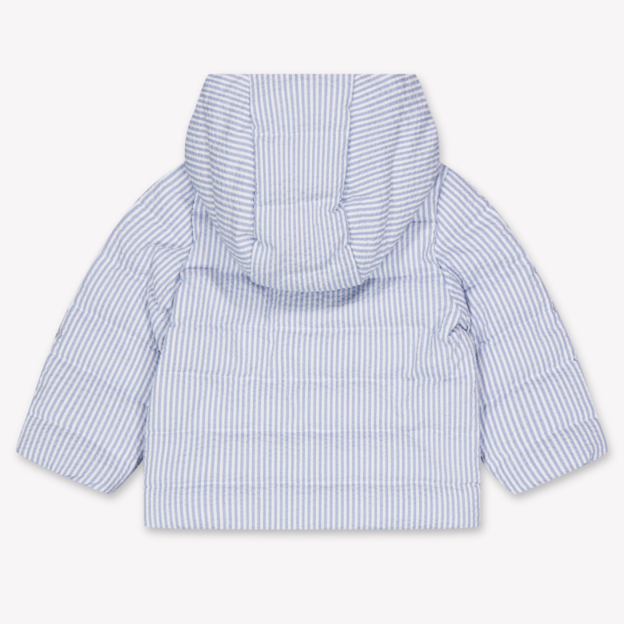 Een lichtgewicht tussenjas die verfijning en comfort moeiteloos combineert. De Moncler Haluk is gemaakt voor kleine ontdekkingsreizigers met een gevoel voor stijl. Het luchtige seersucker-streepdesign in klassiek lichtblauw voelt heerlijk zacht aan en ademt luxe. Dankzij de gewatteerde voering en praktische capuchon is je kleintje altijd beschermd, zonder in te leveren op bewegingsvrijheid of elegantie. ✨
