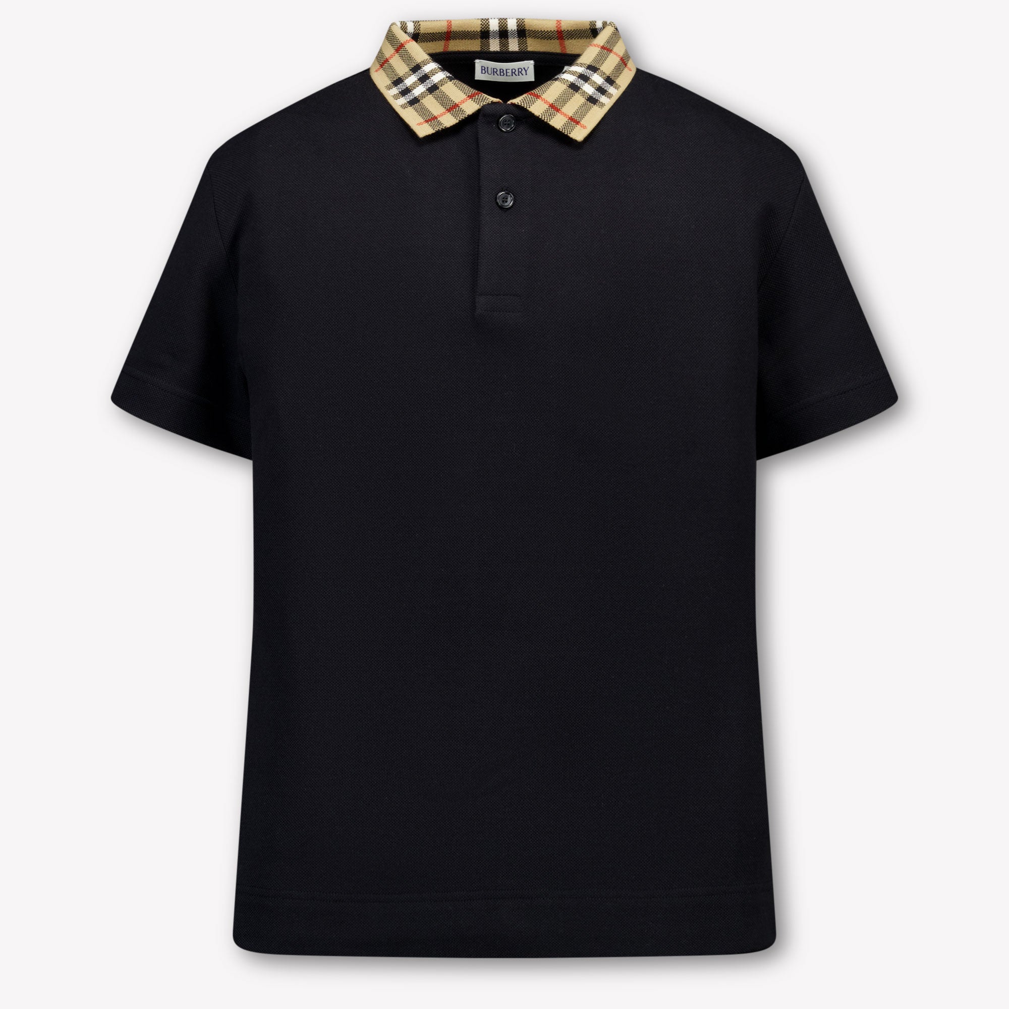A style statement for young gentlemen: this refined polo from Burberry takes casual elegance to the next level. The classic black shade gets an iconic twist thanks to the recognizable checked collar in house check — a subtle nod to the brand's British heritage. Made from soft, breathable cotton piqué with a comfortable fit, ideal for both school days and special occasions. Luxurious, yet effortlessly wearable ✨